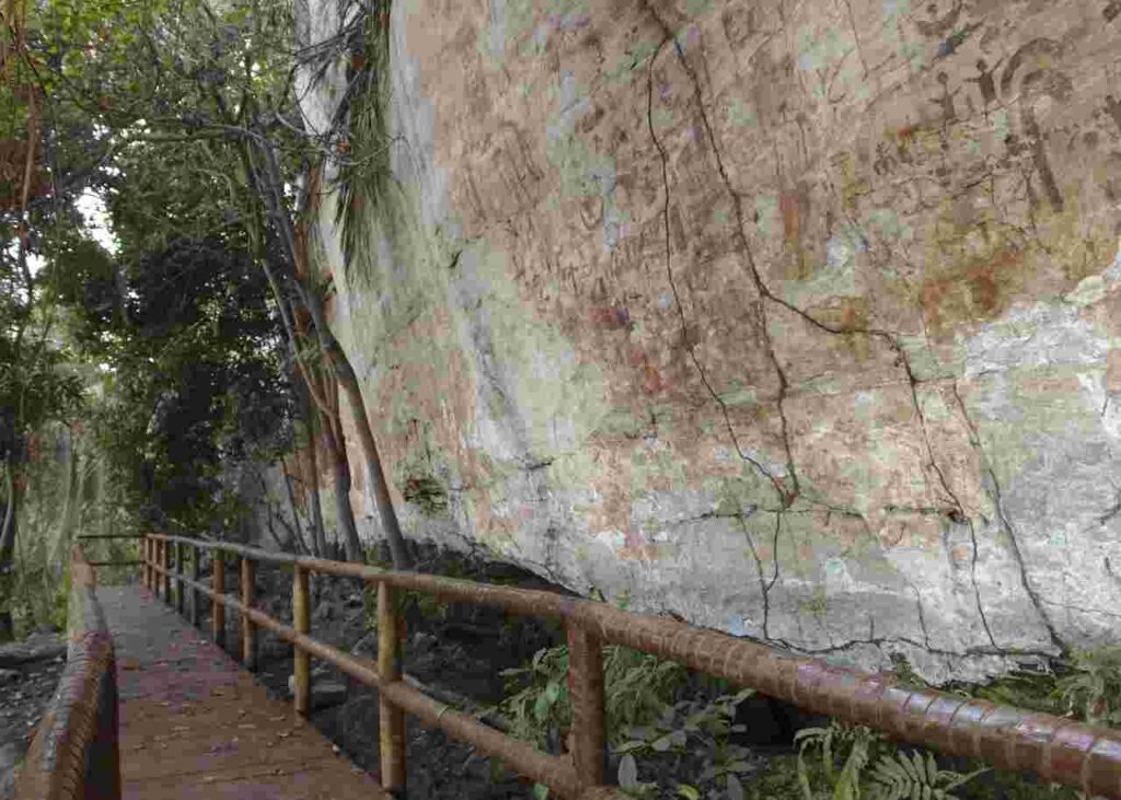 O sítio se caracteriza pela presença de registros rupestres ao longo de 50 metros de um paredão arenítico. Ele possui mais de 1,5mil grafismos que representam animais, como pássaros e mamíferos, seres humanos e artefatos. Entre as pinturas, há a predominância da cor vermelha, mas também há registros da cor amarela.