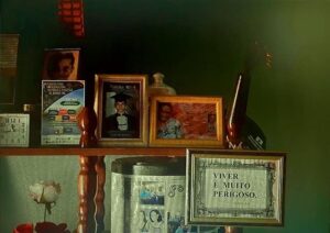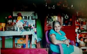 O trabalho de fiar exige coordenação – com os pés se gira a roda enquanto as mãos cuidam de alimentar a máquina com o algodão que é transformado em fio. Gercina organizava todos os mutirões de fiandeiras. Era comadre de todas e juntava benzedeiras, parteiras e rezadeiras. Depois que faleceu, em 2014, tudo mudou. A vila entrou em luto. Hoje o galpão das artesãs tem ares de abandono – as janelas estão com fendas, parte da madeira do forro já caiu. Nada que lembre o brilho do passado, quando o local chegou a abrigar mais de 50 fiandeiras que passavam as tardes trabalhando juntas. Dona Nega guarda um retrato de Gercina na parede da sala. “Ela era minha grande amiga. Gercina era a luz de Sagarana”, diz a fiandeira, com os olhos tristes ao falar da fotografia. “Ela sempre será meu anjo da guarda. Com ela, não tinha medo de enfrentar o mundo. Depois que ela morreu, o medo voltou”. Dona Nega nos chama para conhecer a associação. Ela carrega sua roda de fiar nos ombros e caminha em direção à estátua. “Eu não acho que parece com ela não”, observa. Em frente à estátua, faz uma homenagem a quem se foi – suspende a roda para que a amiga fie mais uma vez. Este ano, outra morte abalou a comunidade. Foi-se Dona Conceição. Muitas fiandeiras se aposentaram. Dona Geralda quase não sai de casa. A talentosa Maria Braga vendeu as cardas e a roda. “Vejo a vida passar na janela”, lamenta.