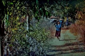 Na casa de Dona Nadir, uma frase de Guimarães Rosa – Viver é muito perigoso – divide espaço com fotos e outras lembranças. Para a fiandeira, “é perigoso mesmo né? Tem que ter coragem”. Encantos e desencantos Sagarana é um pacato distrito de Arinos. Tem nome inspirado na obra de Guimarães Rosa. A vila rural nasceu em 1970, sendo o primeiro assentamento de reforma agrária de Minas Gerais. Na vila, diz-se bom dia ou boa tarde a quem quer que se cruze no caminho. Chegamos na época da colheita do baru, nativo do Cerrado. Os moradores passam as tardes quebrando o fruto nos quintais. No passado, o baru era alimento para o gado. Agora, a castanha foi descoberta por renomados chefs de cozinha e hoje tem alta valia no mercado. Cruzando a estrada principal de Sagarana, ao lado de um campinho de futebol de várzea, uma estátua de concreto chama a atenção de quem passa em frente ao galpão da Associação dos Artesãos. É Dona Gercina, sentada a fiar e a mirar a comunidade. Dona Gercina foi uma das primeiras moradoras a chegar em Sagarana. Reconhecida pela alegria, fez as fiandeiras ganharem protagonismo. Além de líder da Associação dos Artesãos local, era poeta – criou versos e músicas para as fiandeiras cantarem. Para ditar o ritmo das danças, chamou os tocadores de Folia de Reis, que incorporaram a sanfona, o violão e o pandeiro às apresentações.