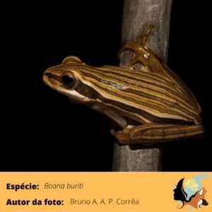 Boana buriti, (Caramaschi and Cruz, 1999) Vocalização Nome(s) popular(es) Perereca de pijama. História Natural Esse anfíbio possui hábitos noturnos, sua dieta ainda não foi estudada. Os machos são encontrados vocalizando em arbustos, em folhas largas e em áreas gramadas. A época de reprodução se inicia junto com o período chuvoso e termina com o fim …