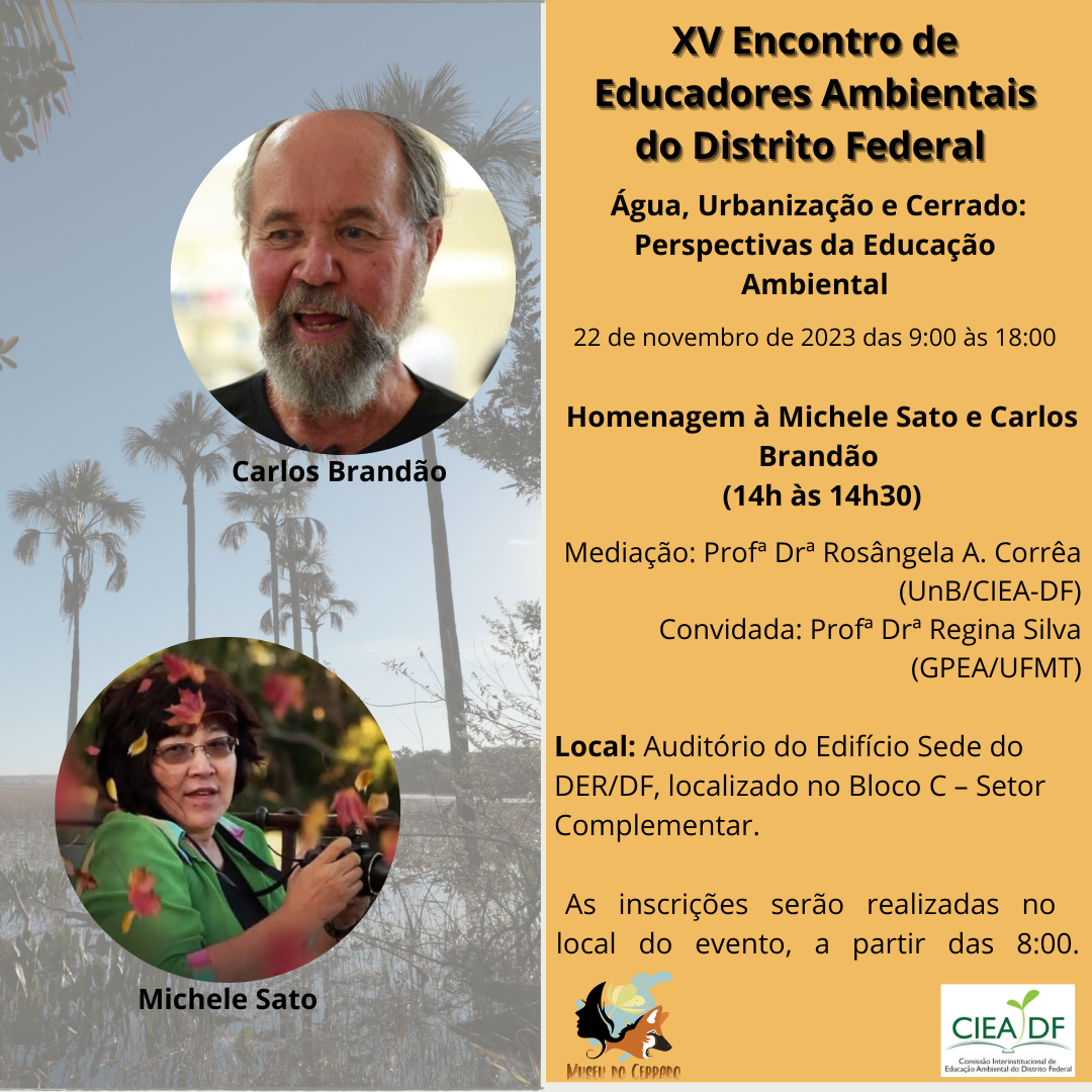 XV Encontro de Educadores Ambientais do Distrito Federal O evento é organizado pela Comissão Interinstitucional de Educação Ambiental do Distrito Federal (CIEA-DF), colegiado de instituições governamentais e da sociedade civil, que promove a implementação, o acompanhamento e a avaliação do Plano Distrital de Educação Ambiental (PDEA). Em sua 15ª edição, o evento terá como tema …
