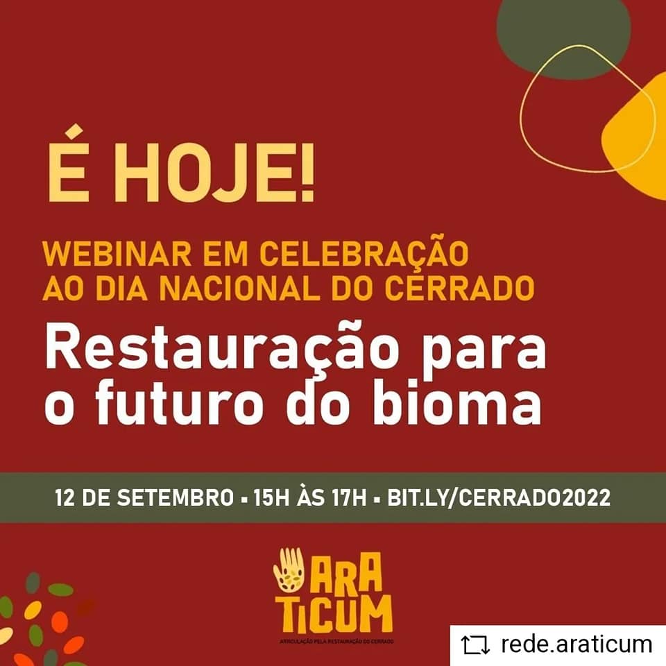 Restauração para o futuro do bioma A partir das 15h no YouTube, o “Dia Nacional do Cerrado: Restauração para o futuro do bioma”, webinar realizado pela Araticum.O evento contará com apresentações de representantes da Instituto Chico Mendes de Conservação da Biodiversidade (ICM-Bio), Rede Sementes do Cerrado, Cargill, Instituto Sociedade, População e Natureza (ISPN), Cooperaçu e …