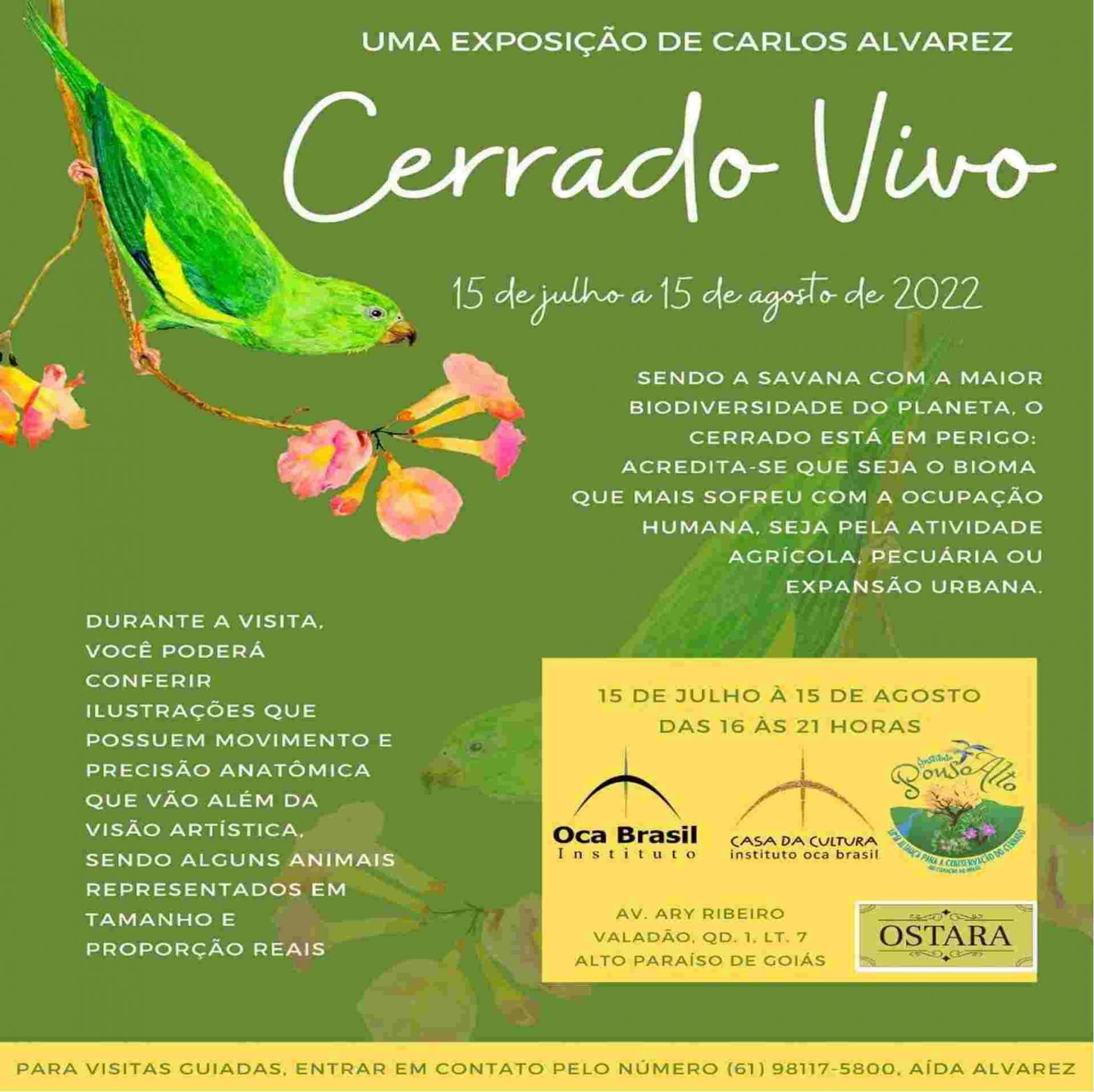 Exposição “Cerrado Vivo” Exposição “Cerrado Vivo” estará na Casa de Cultura do Instituto Oca Brasil, em Alto Paraíso de Goiás, porta de entrada para uma das últimas áreas preservadas de Cerrado: a Chapada dos Veadeiros. Serão expostas ilustrações da rica fauna do Cerrado, algumas representadas em tamanho natural. De 15 de julho a 15 de …