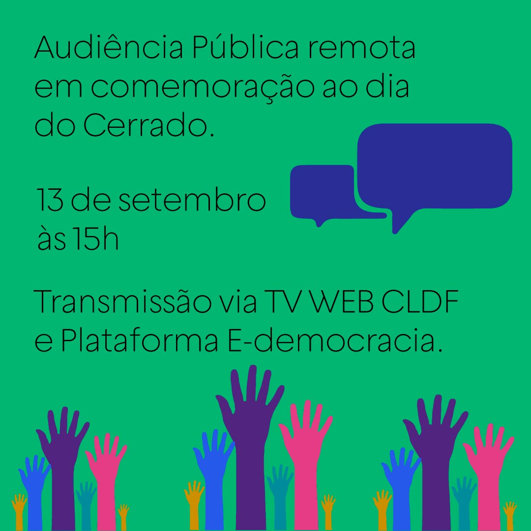 Audiência Pública Remota em comemoração ao dia do Cerrado Audiência Pública Remota em comemoração ao dia do Cerrado, que ocorrerá no dia 13 de setembro 2021, a partir das 15h. Nós queremos o Cerrado preservado e de pé, portanto, é importante debater a sua importância e relevância, de modo que tenhamos consciência para a …