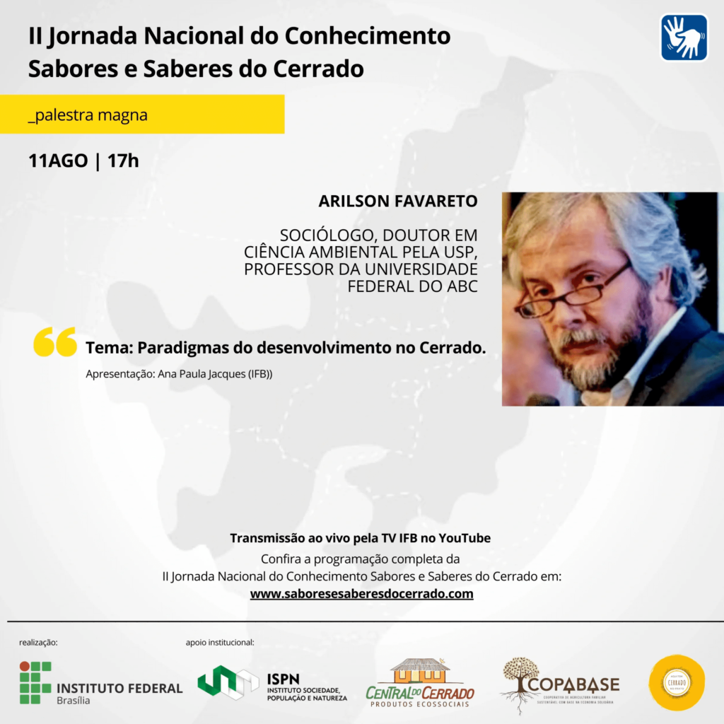 Apesar das restrições impostas devido a pandemia do novo coronavírus, a segunda edição da Jornada Nacional do Conhecimento Sabores e Saberes do Cerrado se aproxima. O evento, que será realizado pelo Campus Riacho Fundo do IFB, entre os dias 11 de agosto à 11 de setembro, é gratuito e contará com palestra magna, aulas-show, webnário, concurso de receitas e mostras fotográficas. Tendo em vista o contexto da pandemia, a jornada foi totalmente adaptada ao ambiente virtual e será transmitida pelo canal IFBTV, no YouTube.