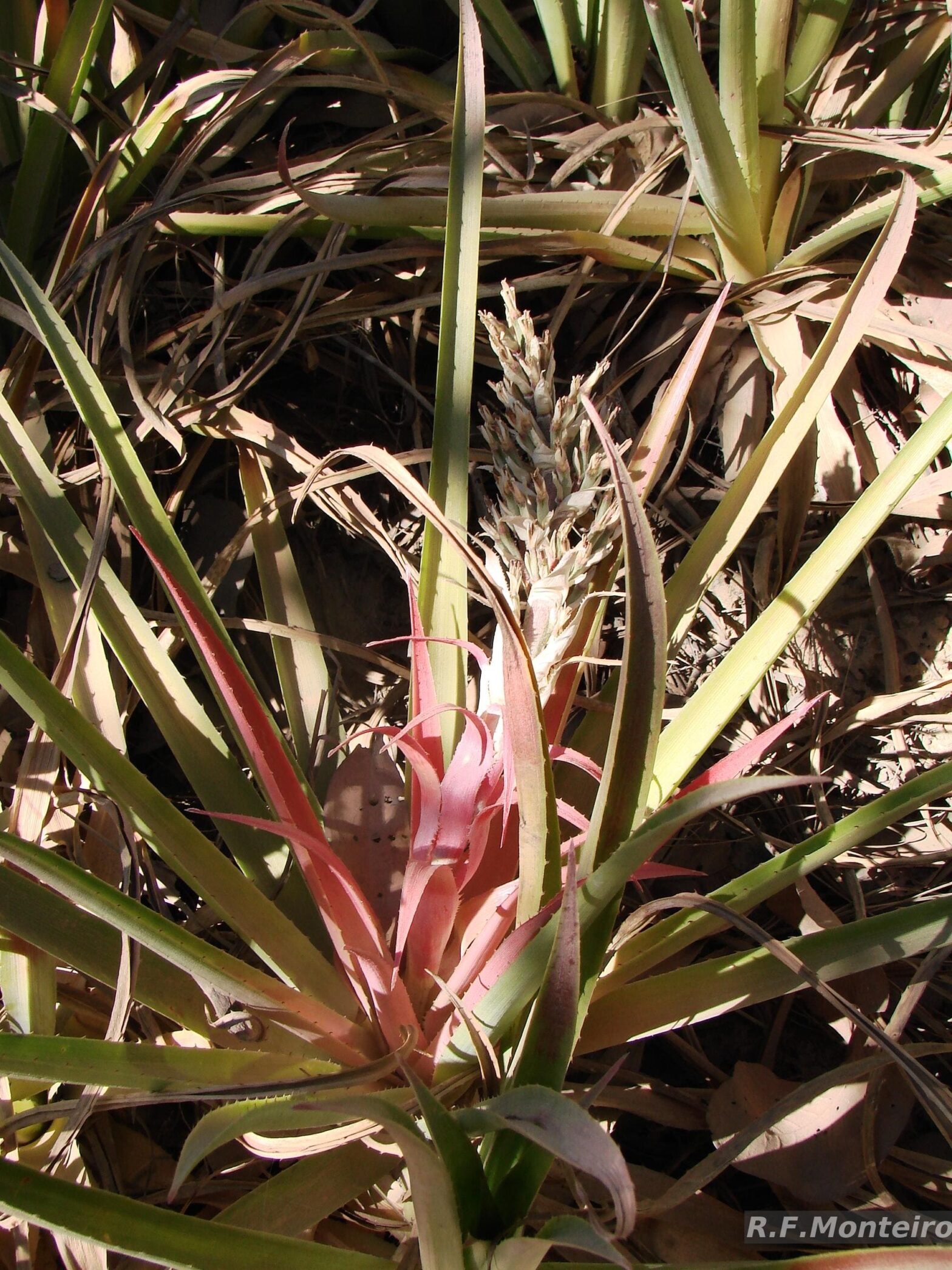 Bromelia reversacantha Mez Nome(s) popular(es): Bromélia Família: Bromeliaceae Forma de vida: Erva Frutificação: Sem informação Dispersão: Zoocoria Polinização Provavelmente Ornitofilia (pássaros), Quiropterofilia (morcegos), Melitofilia (abelhas) e Psicofilia (borboletas) Usos: Ornamental Habitat no Cerrado: Cerrado lato sensu Domínio: Cerrado Distribuição: Centro-oeste (GO) Referências PERES, M.K. Estratégias de dispersão de sementes no bioma Cerrado: considerações ecológicas e …